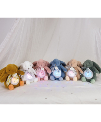 Zajačik od DouDou et Compagnie v krásnych púdrových farbách je veľmi jemný a bábätko si ho rýchlo obľúbi. Na stenu si premietnite hviezdičky a upokojujúca melódia ľahko uspí bábätko.