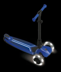 Kolobežka je vybavená svietiacou nášľapnou plochou a kolieskami, ktoré svietia počas jazdy (bez potreby batérií). Riadidlá sú výškovo nastaviteľné v 4 úrovniach, takže sa prispôsobia rastu dieťaťa.
